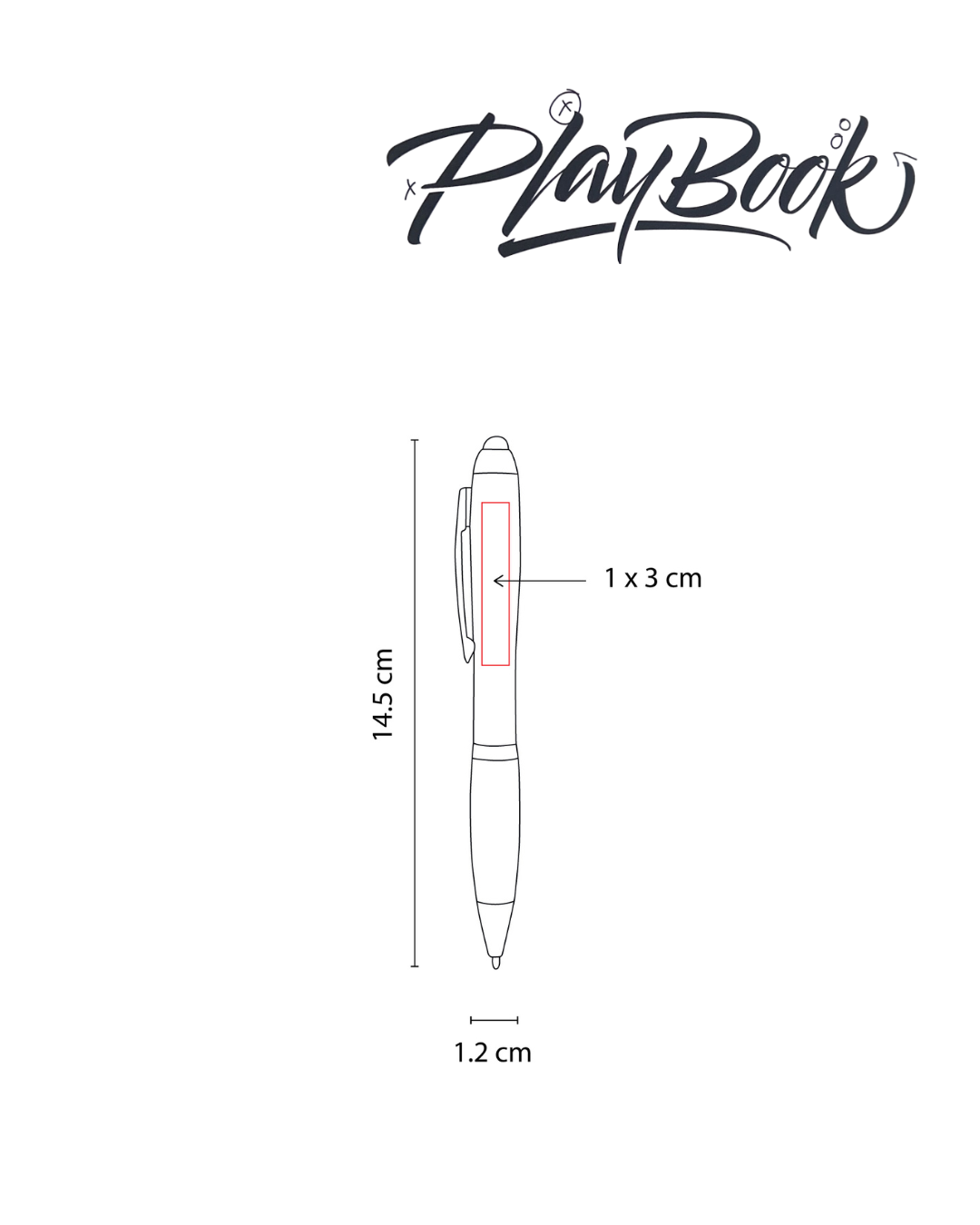 Bolígrafo con luz LED y touch screen. Mecanismo twist. Al grabar y girar, el logotipo se ilumina.