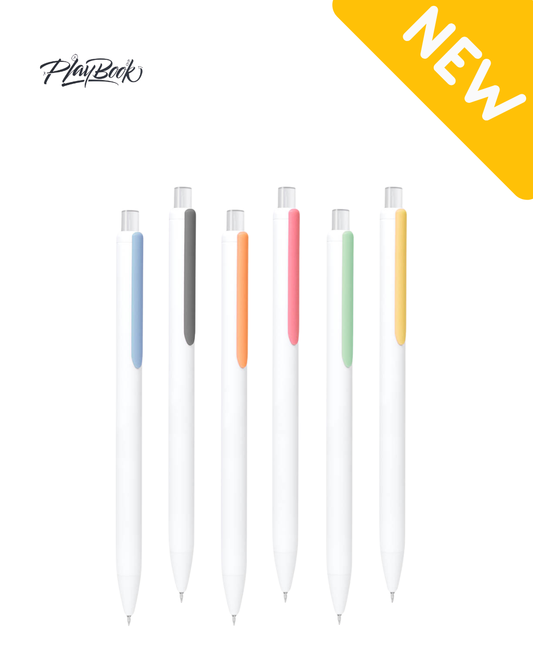 Bolígrafo con tinta semigel. Clip simulado que añade un toque de color moderno. Mecanismo pulsador.