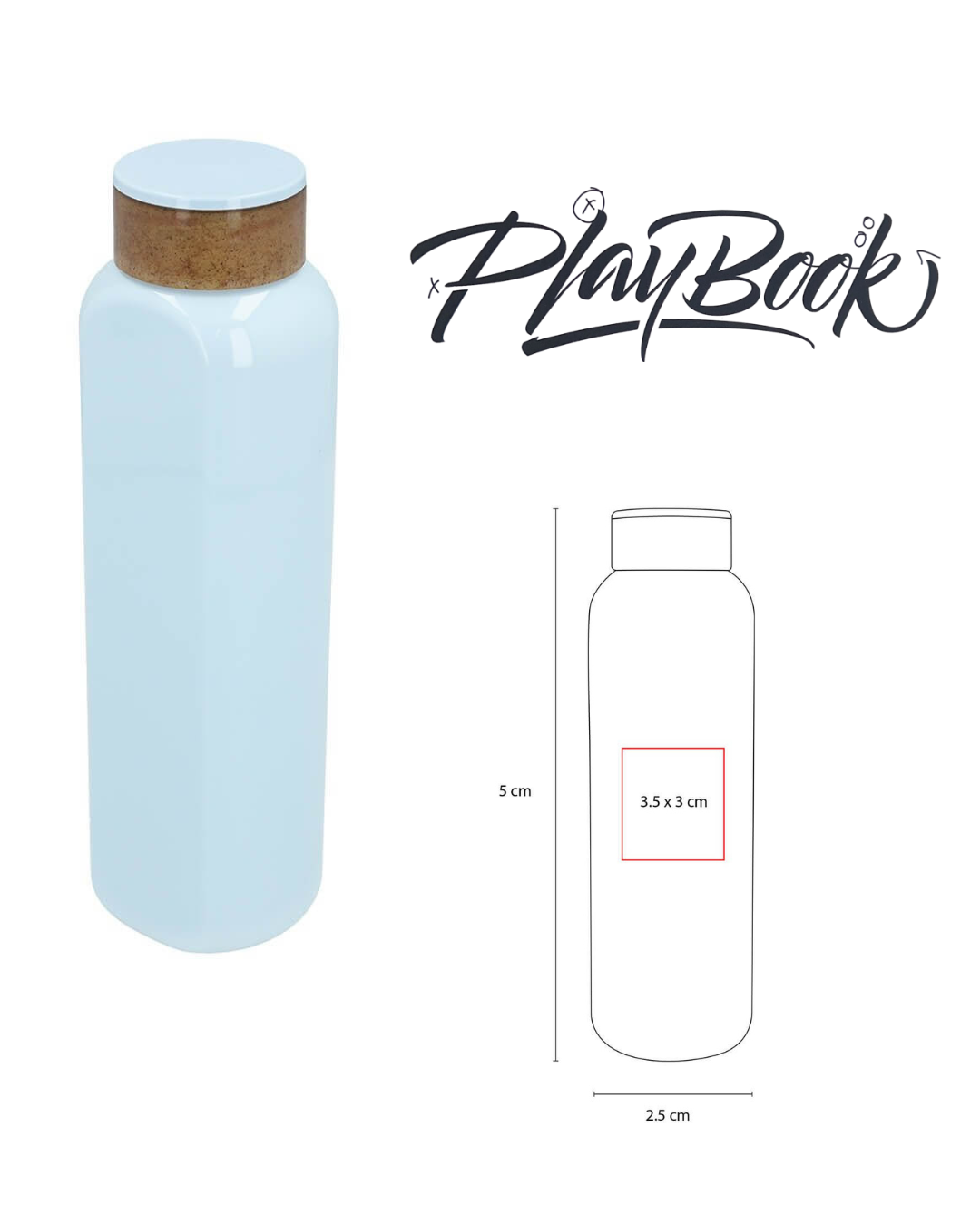 Cilindro de tritán con aditivo antimicrobiano que lo hace eficaz contra el crecimiento de bacterias. Tapa de plástico con fibra de agave. Sistema de rosca twist-off que permite abrir y cerrar la tapa en un giro. Por el tipo de material el color de la tapa puede variar. No exponer el cilindro a temperaturas mayores a 40 °C y revisar que la tapa no esté cerrada completamente para su almacenamiento y transportación. Mantener en su empaque individual antes y después de su transformación. No apto para bebidas calientes. No introducir en microondas ni lavavajillas