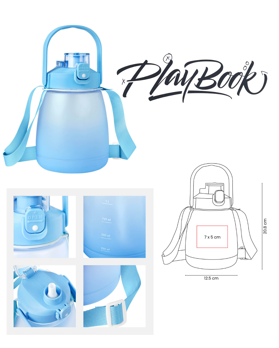 Tapa de plástico con cierre de rosca y boquilla, sobretapa push con botón de seguridad y asa plegable. Incluye asa de poliéster para transportarlo fácilmente. Cuerpo con terminado rubber que lo hace suave al tacto. Incluye indicador de mililitros para motivar y controlar tus hábitos de hidratación. Incluye popote y caja individual.