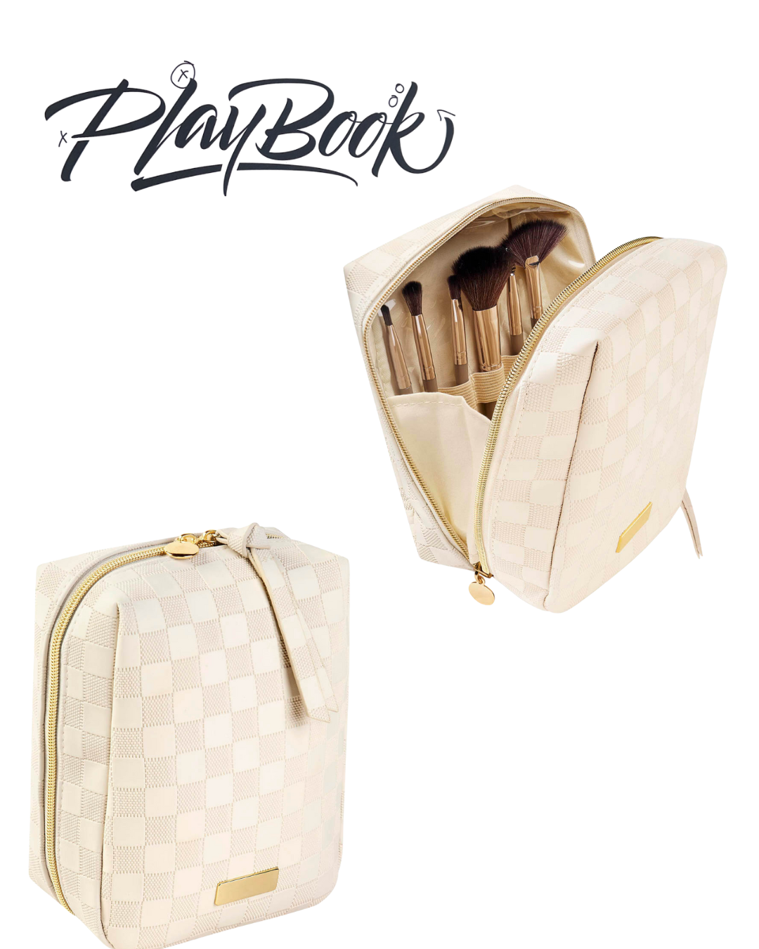 Organizador de cosméticos.Compartimento con abertura amplia facilita el acceso y la organización de brochas y accesorios, manteniéndolos siempre en orden y a la vista. Además, la placa metálica al frente añade un toque de distinción. Ideal para quienes valoran la practicidad en su rutina de belleza.