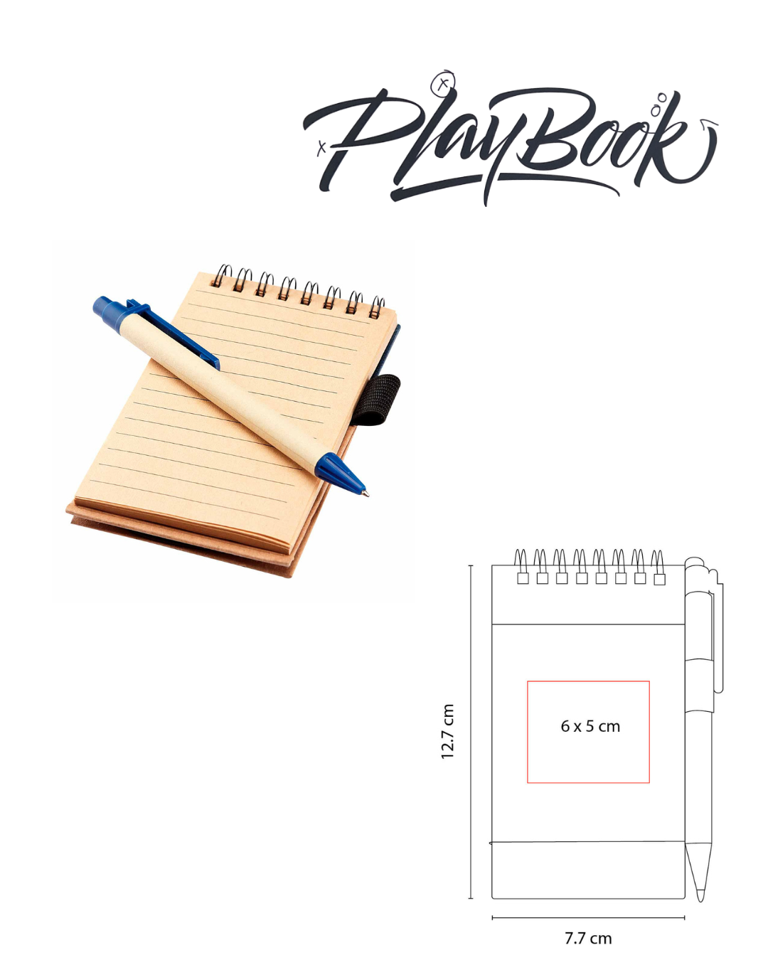 Libreta con 50 Hojas de raya. Incluye bolígrafo ecológico y elástico para cerrar.