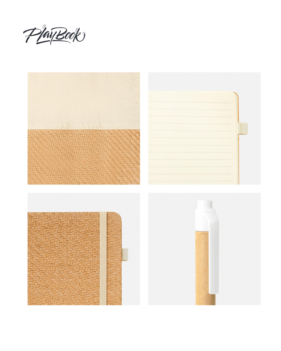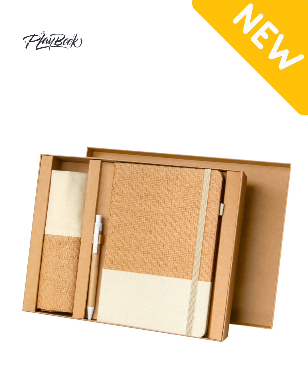 Set ecológico fabricado con materiales amigables con el medio ambiente. Incluye libreta con cubierta rígida, 80 hojas a rayas, elástico para cerrar y elástico porta bolígrafo. Bolsa de algodón estilo tote. Bolígrafo de cartón con sistema push. Presentado en caja de cartón tipo regalo.