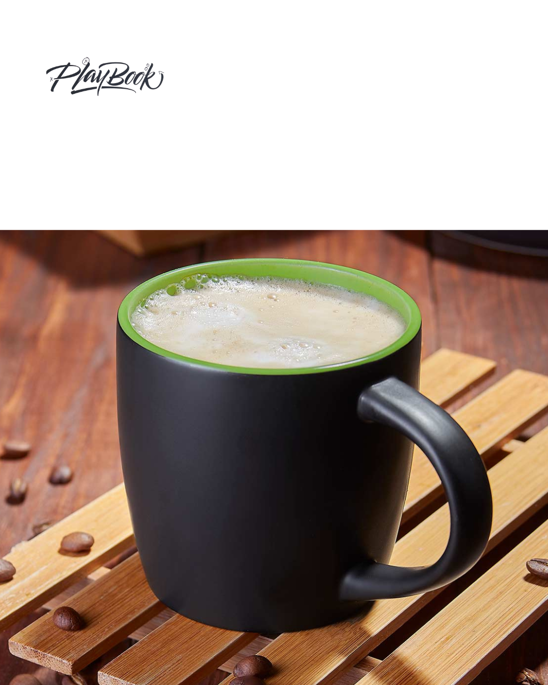 Taza de cerámica interior de color y exterior negro. Terminando mate. Venta caja cerrada de 36 piezas.