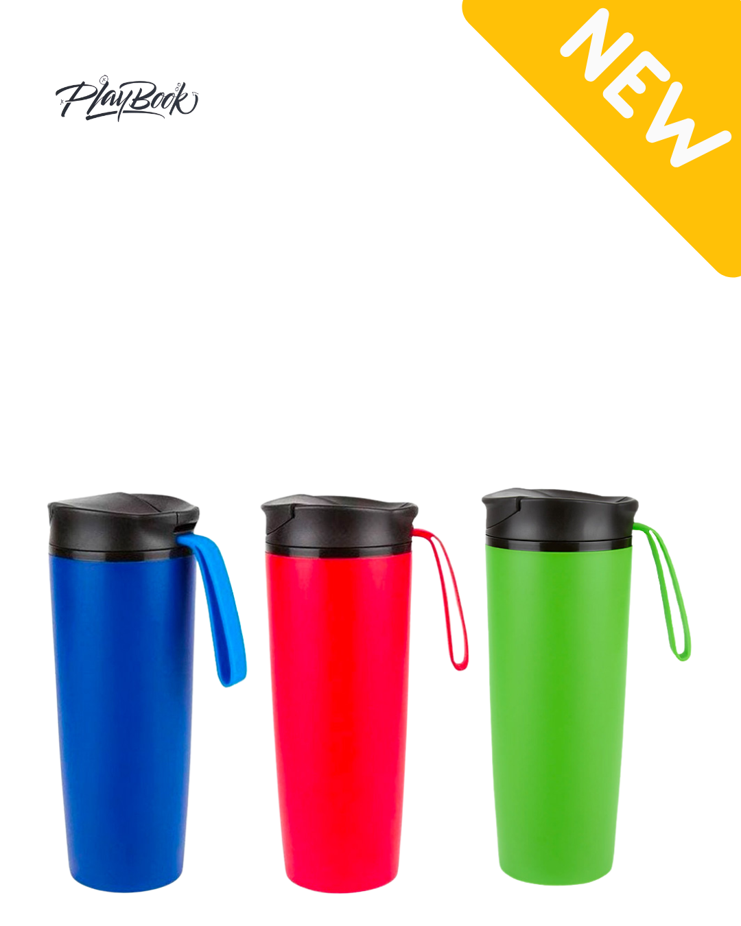 Doble pared. Pared interna acero inoxidable, pared externa plástico. Tapa de plástico con boquilla, sobre tapa con cierre a presión y asa de silicón. Chupón de succión en la base que permite la fijación a la superficie evitando el derrame por accidente. Incluye caja individual. Este producto por ser últimas piezas puede presentar alguna variación, no se aceptan devoluciones.
